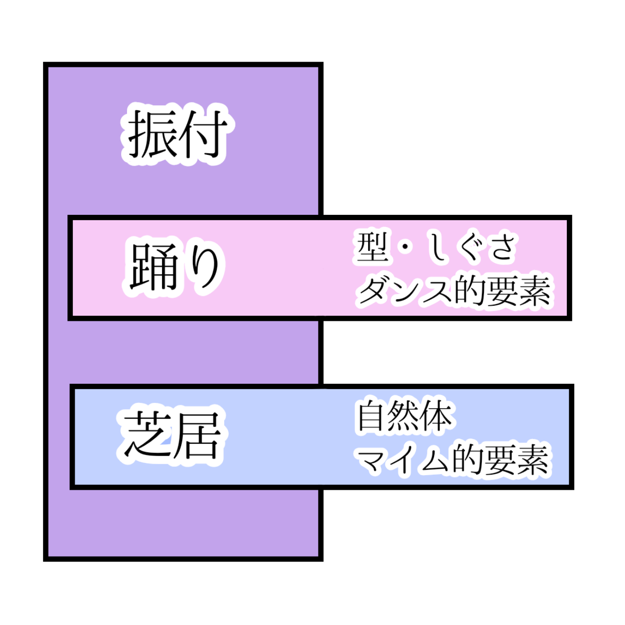 振付には、「踊り」と「型・しぐさ」と「芝居」