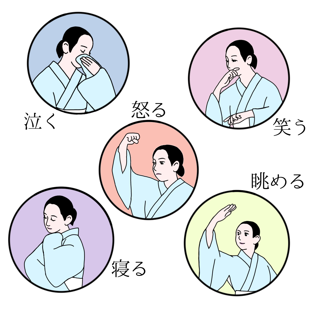 踊りと音楽で役柄や心情、物語や自然を表現します