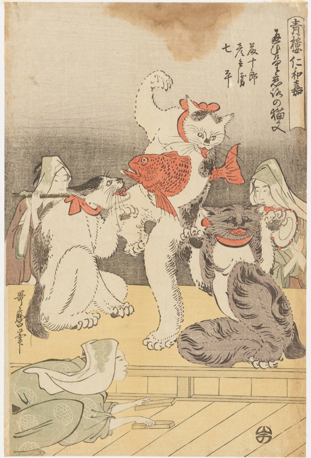 喜多川歌麿筆「青僂仁和嘉・通いけり恋路の猫又」